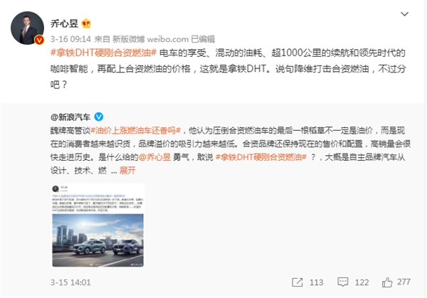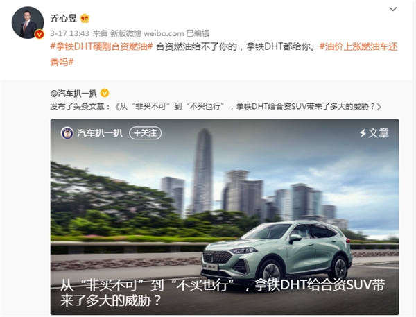 而拿鐵DHT所搭載的智能DHT全自研動力架構(gòu),自亮相以來就備受行業(yè)內(nèi)好評,不僅占據(jù)技術(shù)尖端位置,力挫雙田混動技術(shù)。甚至魏牌高管也還在微博上發(fā)帖,表明拿鐵DHT的實(shí)力,已經(jīng)超越了合資品牌。