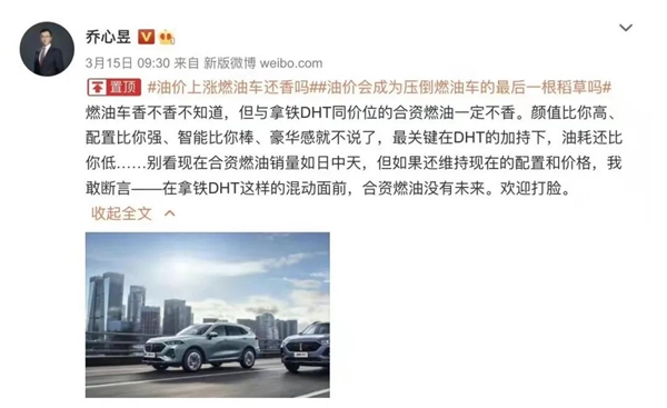 然后,我“反思”了一下,如果未來拿鐵DHT的質(zhì)量耐造,合資品牌是不是就沒有未來了?這么來看,微博那條有點(diǎn)小狂的實(shí)話,真心有點(diǎn)東西。