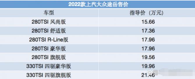 據(jù)上汽大眾官網(wǎng),2022款途岳(Tharu途岳)于近日正式上市,此次共推出7款車(chē)型,官方指導(dǎo)價(jià)位在15.66萬(wàn)-21.46萬(wàn)元。2022款上汽大眾途岳全系售價(jià)相比舊款均下降了9200元,配置部分進(jìn)行了多方面的升級(jí),車(chē)系陣容也有所精簡(jiǎn),這次改款可以用“增配降價(jià)”來(lái)概括。