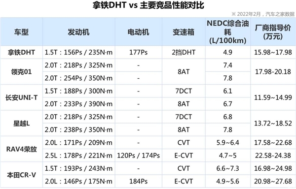 此外,拿鐵DHT的優(yōu)秀還在于其雖然實力出眾,但卻沒有任何“溢價”。如圖所示,橫向?qū)Ρ雀鞔笃放茻衢T車型,動力、油耗極具優(yōu)勢的同時,售價也更為親民。也因此,拿鐵DHT不僅銷量看漲,還有諸多用戶親身推薦與好評。