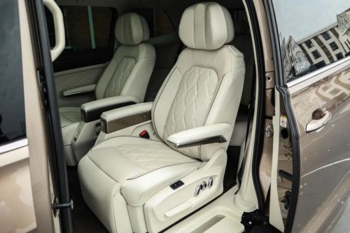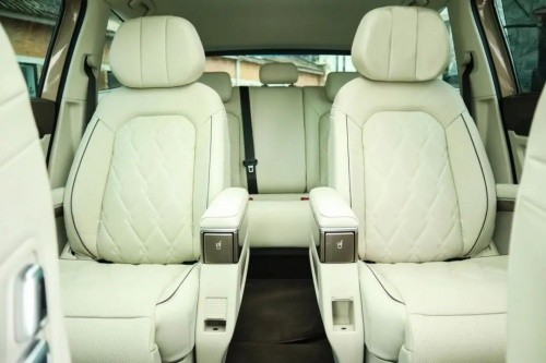 上汽大眾新威然的第二排采用的是獨立造型的禮賓座椅,配合上質(zhì)感高級的真皮面料以及縫線,讓整張座椅顯得檔次感滿滿。