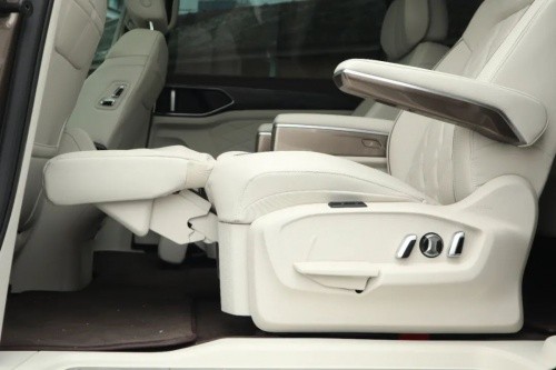 新威然上的這張禮賓座椅不僅支持電動調(diào)節(jié)前后和靠背角度,還配備了3檔位3模式的氣動按摩功能以及賓利同結(jié)構(gòu)頭枕,再搭配上同級罕有的90°可調(diào)節(jié)的電動腿托功能,乘客可以在第二排舒舒服服地“躺平”,享受按摩,十分愜意。