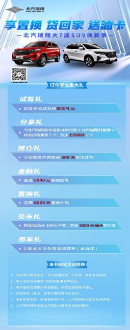 北汽瑞翔X3和北汽瑞翔X5作為兩位實(shí)力不凡的選手,在新能源車價(jià)不斷上漲的今天似乎更有選擇的理由,購(gòu)車送油卡活動(dòng)更是雪中送炭,幾乎可以承包用戶近一年的油費(fèi),真金白銀的補(bǔ)貼,讓車真正走進(jìn)用戶的生活,加上至高5000元金融貼息、至高置換補(bǔ)貼、3年或6次免費(fèi)保養(yǎng)等眾多實(shí)惠的福利,進(jìn)一步降低了入手門檻和后期用車成本。從買車到用車,北汽瑞翔全盤為您考慮周全,心動(dòng)的朋友不妨去當(dāng)?shù)乇逼鹣?S店進(jìn)店了解吧。