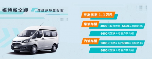 江鈴福特輕客分為新世代全順Pro、新全順、特順三大產(chǎn)品系列, 新世代全順Pro作為江鈴福特旗下最高端的輕客車型,外觀內(nèi)飾夠潮夠大氣,配置和服務(wù)達(dá)到整個(gè)輕客行業(yè)頂尖水平,比如智能駕駛輔助系統(tǒng),全時(shí)運(yùn)營服務(wù),發(fā)動(dòng)機(jī)和變速箱終身質(zhì)保等。這款車自上市場價(jià)格一直很穩(wěn)定,此次綜合至高優(yōu)惠2.3萬元,手筆相當(dāng)之大,買到即是賺到。