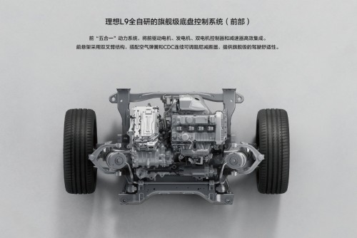 理想L9的前“五合一”動(dòng)力系統(tǒng)包含驅(qū)動(dòng)電機(jī)、發(fā)電機(jī)、雙電機(jī)控制器和減速器,后“三合一”動(dòng)力系統(tǒng)包含后驅(qū)動(dòng)電機(jī)、電機(jī)控制器和減速器。更高的集成度,帶來更優(yōu)的體積效率,使理想L9的車內(nèi)空間利用率進(jìn)一步提升。