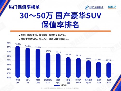 5月6日,中國汽車流通協(xié)會(huì)發(fā)布了2022年4月二手車保值率排名榜單。在30-50萬價(jià)格區(qū)間的國產(chǎn)豪華SUV中,中國的造車新勢力理想、蔚來均有車型上榜,其中理想ONE保值率表現(xiàn)尤其亮眼,三年保值率為73.3%,僅次于奔馳GLC、寶馬X3,在榜單中位列第三。