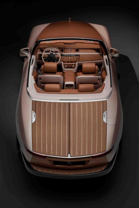 干邑色與牡蠣色皮料、皇家胡桃木飾面匠心獨(dú)運(yùn)地搭配在玫瑰金和珍珠母色的內(nèi)飾之中。該車(chē)內(nèi)飾皮料配以珍珠色飾面,使座椅、內(nèi)飾表面和流暢線條更為顯眼。車(chē)內(nèi)通道采用皇家胡桃木飾面,飾以玫瑰金色細(xì)條,視覺(jué)上與車(chē)尾甲板遙相呼應(yīng),為車(chē)內(nèi)增添暖意。