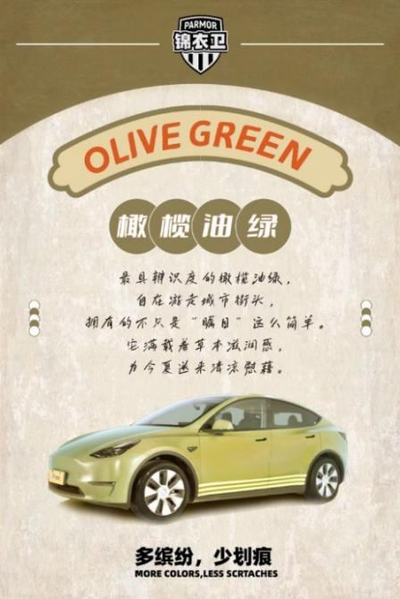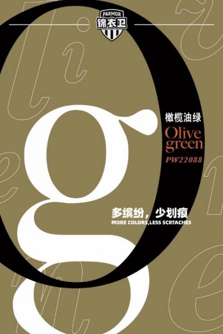 色彩的藝術(shù)造詣,源自和生命的相互能量關(guān)系。大師之作都在試圖用色彩激發(fā)靈性,給人們自由、幸福、開(kāi)心、浪漫的種種感受,讓內(nèi)心充盈而美好。錦衣衛(wèi)車(chē)身改色將色彩能量融入設(shè)計(jì),以精深的色彩能量體系傳遞出美好寓意,讓愛(ài)車(chē)擁有了撫慰心靈的力量。 繼 “蝴蝶蘭”車(chē)身流行色發(fā)布后,錦衣衛(wèi)車(chē)身改色這一次帶來(lái)的是充滿(mǎn)營(yíng)養(yǎng)的【橄欖油綠】。