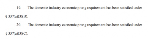 至于本337調(diào)查案件的始末,在此不贅述,如果有不清楚的,可網(wǎng)絡(luò)檢索,有詳細(xì)報道。裁決書的查詢下載地址:https://edis.usitc.gov/external/search/document/771159,需要注冊才能查看下載。