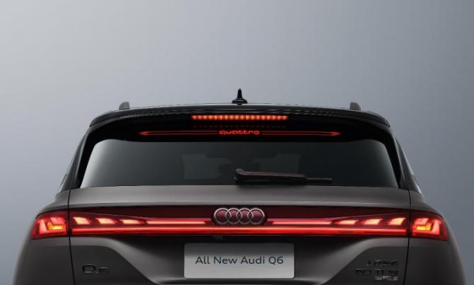 此外,奧迪 Q6 應(yīng)用了奧迪最先進(jìn)的燈光技術(shù)。前貫穿式 LED 燈是首次在奧迪車型上使用,承接兩側(cè)智能矩陣式 LED 大燈,明眸閃耀。車輛尾部藏身著奧迪Q6 獨(dú)具一格的魅力,后尾翼 quattro 投影式剎車燈將“quattro”字樣的紅色光影懸浮于后尾窗上,形成更富個(gè)性特色的高位剎車燈視覺(jué)效果。Q6 也成為了奧迪全球量產(chǎn)車中首次搭載這一技術(shù)的車型。后尾翼 quattro 投影式剎車燈與貫穿式流光 LED 尾 燈相結(jié)合,不僅實(shí)現(xiàn)了極高的車身辨識(shí)度,更為用戶呈現(xiàn)感官充分交融的科技美學(xué)體驗(yàn)。