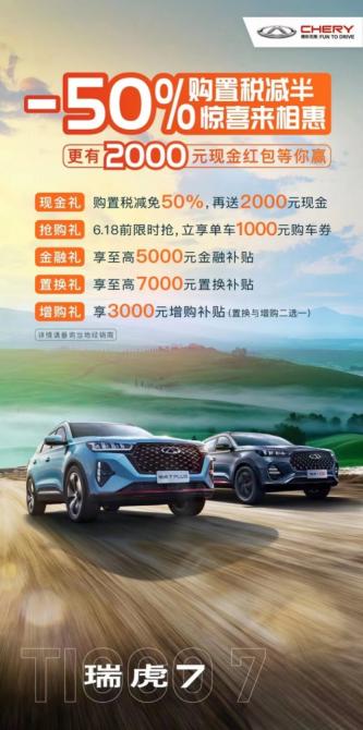 瑞虎7PLUS多重促銷福利,享購置稅減半