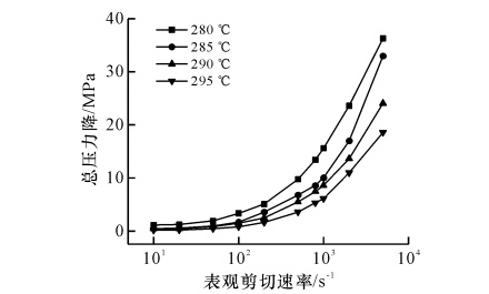 圖1:不同溫度下表觀剪切速率-總壓力降關系