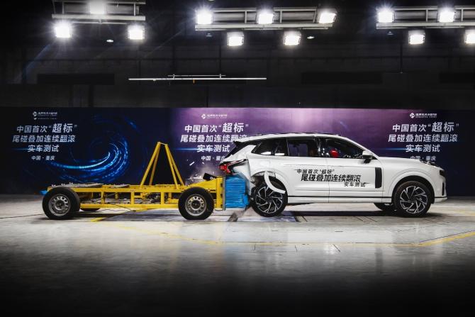 領克09成功完成中國首次“超標”尾碰疊加連續(xù)翻滾實車測試