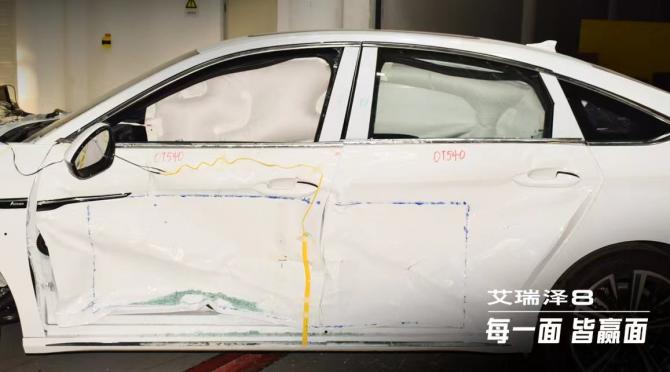 所謂“真金不怕火煉”,擁有優(yōu)化結(jié)構(gòu)和工藝設(shè)計的奇瑞艾瑞澤8,成功通過四重側(cè)碰實驗:中國、歐洲的NCAP,中國C-IASI和美國的IIHS側(cè)碰。實驗過程中,移動臺車以60km/h的速度撞向測試車的側(cè)面,碰撞臺車的質(zhì)量達到1500kg,測試很猛烈,但車身卻很堅挺。