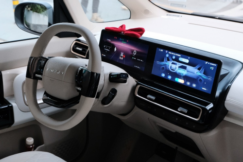 2023款KiWi EV的內(nèi)飾同樣充滿著科技感,10.25英寸儀表盤和10.25英寸觸控屏組成了一體式“瀑布”雙聯(lián)屏。中控屏采用原子桌面布局設(shè)計,可實現(xiàn)桌面自定義,并且支持語音交互、多媒體影音、地圖導(dǎo)航、車控設(shè)置等功能。