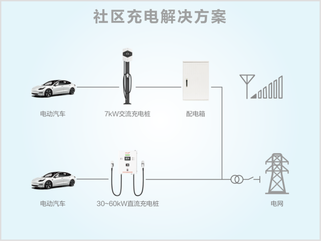 該方案基于科華7kw交流樁、30kW單槍/60kW雙槍小直流充電樁等產(chǎn)品,旨在打造高效便捷的社區(qū)充電服務(wù)體驗(yàn),具備以下功能特點(diǎn):
