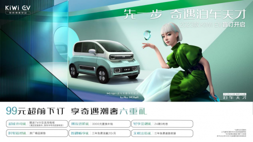 在車型配置信息公布的同時,2023款KiWi EV全網(wǎng)盲訂正式同步開啟,廣大用戶通過“LING Club”APP、小程序,京東、天貓旗艦店等官方線上渠道,即可99元下訂,尊享“奇遇六重禮”, 下訂后訂金可隨時無理由全額退款。