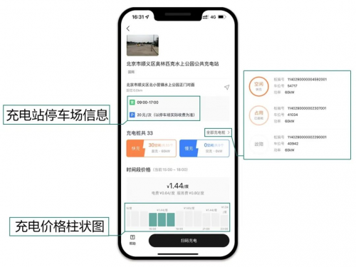 點(diǎn)擊進(jìn)入充電站詳情頁,可以看到核心的信息展示。車主們最關(guān)心的營業(yè)時(shí)間、快慢充狀態(tài)、充電價(jià)格,都以最顯眼的方式展示出來,甚至把未來時(shí)間段的充電價(jià)格變化做成了柱狀圖,可滑動查看,就像查天氣預(yù)報(bào)一樣方便。
