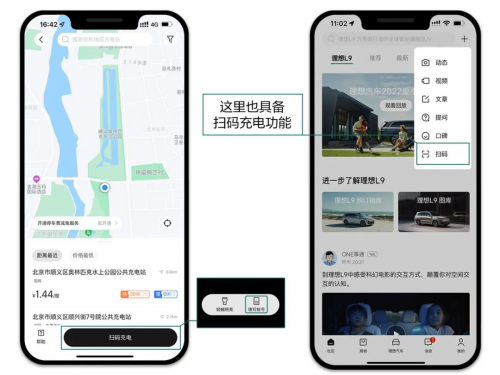 第二種是利用理想App首頁右上角「+」號按鍵的掃碼功能,也具備掃碼充電的功能,對于習(xí)慣固定某一個(gè)充電站的車友來說,簡化了操作步驟,打開App首頁直接點(diǎn)「+」號鍵掃碼,更快更便捷?!?/span>