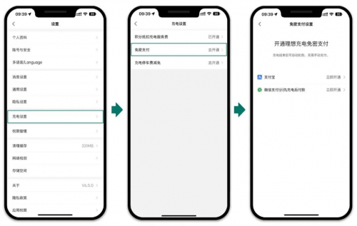 如果說先充后付是提升體驗(yàn)的重要功能,那么配合免密支付就形成了交錢環(huán)節(jié)的”無感支付”模式,可以把步驟簡化到完成掃碼充電后,手機(jī)都不用再次掏出來,充電結(jié)束后直接拔槍走人。先充后付是無需設(shè)置的自帶功能,免密支付則需要手動設(shè)置一下,在“我的-設(shè)置-充電設(shè)置-免密支付”中可以主動選擇微信或者支付寶的免密支付。