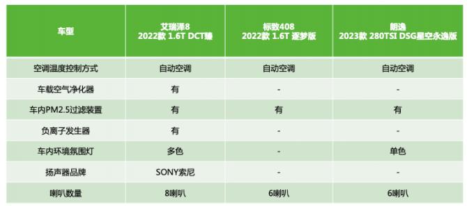 三款車雖然都有中控屏,但艾瑞澤8的中控屏為12.3英寸,尺寸最大,而且車內(nèi)采用多色環(huán)境氛圍燈,大眾朗逸為單色,標(biāo)致408則沒有車內(nèi)氛圍燈。同時這兩款車型也沒有搭載車載空氣凈化器和負(fù)離子發(fā)生器。顯然,艾瑞澤8的科技感和舒適性更強(qiáng)。