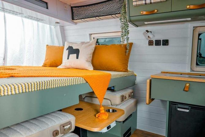 為了讓用戶擁有更為舒適的乘坐體驗(yàn),旅行家RVLIFE露營(yíng)版車內(nèi)采用符合人體工程學(xué)和使用習(xí)性的3+2座椅布局,不僅乘坐體驗(yàn)感更加舒適,空間利用率也得到了大幅提升。而且,車內(nèi)第二排座椅在駐車時(shí)還可變成對(duì)向卡座,搭配抽拉式小桌板,就直接變成聚餐區(qū),兩個(gè)人相對(duì)而坐,將氛圍感拉滿。累了或想要休息時(shí),便可以將座椅靠背翻折,拼成一張雙人床,慢慢置身于甜美的夢(mèng)鄉(xiāng),為下面的旅途養(yǎng)精蓄銳。