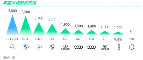 2. 奔馳、寶馬加裝費(fèi)用最高,沃爾沃最實(shí)在。