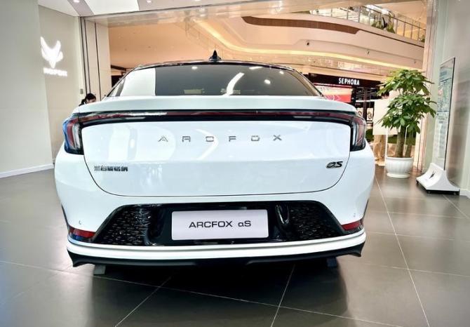 車輛尾部,尾燈采用當(dāng)下最流行的貫穿式設(shè)計(jì),并在燈組兩側(cè)進(jìn)行了彎折處理,配合“ARCFOX”字母尾標(biāo),營(yíng)造了出色的時(shí)尚、科技氛圍,夜間點(diǎn)亮后的效果同樣非常吸睛且有效提升了整車的辨識(shí)度。