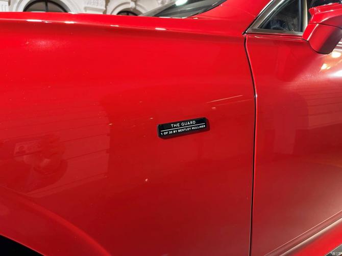 基于歐陸GT打造而來的The Guard設(shè)計靈感來自英國皇家衛(wèi)隊(Royal Guards),采用標志性的圣詹姆斯紅珠光車漆與鯨魚黑頂配搭配,模擬了皇家衛(wèi)隊衛(wèi)兵的經(jīng)典穿搭,同時配備21英寸10輻黑色亮面拋光輪圈,以及碳纖維材質(zhì)專屬打造的風尚套件。專屬的“The Guard”徽章位于新車的前翼子板之上,彰顯與眾不同。