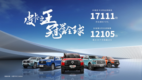 喜迎多地皮卡解禁 長城皮卡9月全球銷售17111臺 再創(chuàng)銷冠傳奇