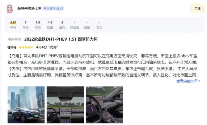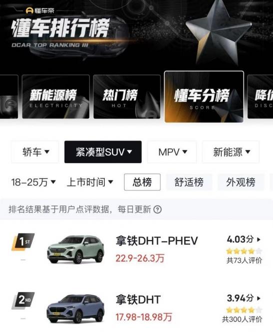 拿鐵DHT-PHEV、拿鐵DHT分別獲懂車帝懂車分排行榜第一、第二