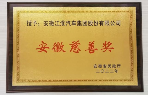 憑借公益領(lǐng)域的突出表現(xiàn),江汽集團(tuán)獲得了“安徽慈善獎(jiǎng)”捐贈(zèng)企業(yè)、安徽省脫貧攻堅(jiān)先進(jìn)集體等榮譽(yù)稱號(hào)。