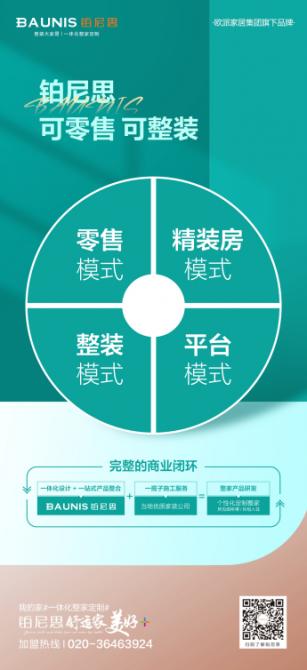 作為歐派家居集團旗下品牌,鉑尼思不僅坐擁龍頭企業(yè)的發(fā)展資源,更擁有龍頭精準的趨勢洞察力和超前的戰(zhàn)略眼光,以一體化設計、一站式產(chǎn)品整合、一攬子施工服務,來滿足消費者整體家人生活方式需求的零售服務模式,實現(xiàn)定制、裝企、供應鏈品牌的有機結合,完善設計+產(chǎn)品+施工的消費閉環(huán),更大限度的迎合一家搞定、拎包入住的主流消費趨勢。