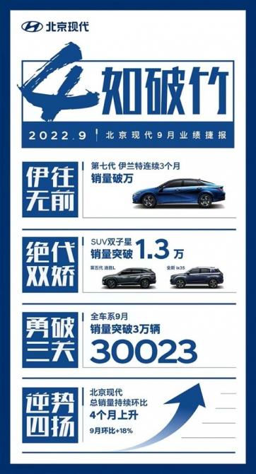 進(jìn)入2022年,多點疫情暴發(fā)、芯片供應(yīng)不足等多種不確定因素導(dǎo)致車企承壓更加明顯,在這樣的大環(huán)境下,北京現(xiàn)代難得地呈現(xiàn)出穩(wěn)健的增長勢頭,特別是6-9月,北京現(xiàn)代實現(xiàn)連續(xù)四個月銷量正增長,9月更是銷售新車30,023輛,環(huán)比增長18.7%,展現(xiàn)出強(qiáng)大的生命力。
