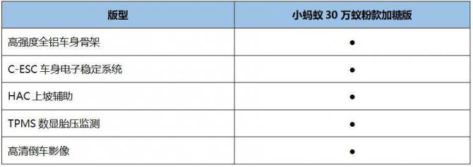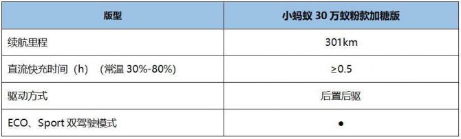 同時,小螞蟻30萬蟻粉款還搭載了高性能永磁同步電機,峰值功率30kW,最大扭矩120N·m,ECO、Sport雙駕駛模式,帶來活力駕駛樂趣;2門4座設計,好開好停;四輪獨立懸架+后置后驅(qū)驅(qū)動方式,帶來更好的拐彎半徑和爬坡性能,開啟更平穩(wěn)順暢的駕控之旅。