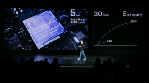 智能座艙方面,集度ROBO-01探月限定版首發(fā)搭載了高通首個量產(chǎn)5nm制程的車規(guī)級芯片——第四代驍龍數(shù)字座艙平臺8295芯片,單片算力高達(dá)30TOPS,是上一代智艙旗艦8155芯片的8倍左右。作為當(dāng)前代際內(nèi)最強(qiáng)悍算力平臺,它不僅支持一體化大屏的3D效果,還能同時(shí)實(shí)現(xiàn)“毫秒級”智能語音響應(yīng)。