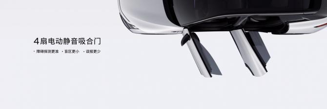全車無車外門把手設計,4扇電動門配置靜音吸合功能。車門集成4顆毫米波雷達,相比超聲波雷達避障更精準,盲區(qū)更小、誤報更少。