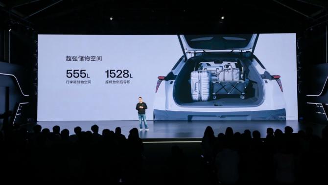 ROBO-01探月限定版有著同級別領先的整車參數(shù)和空間表現(xiàn)。車身長4853mm/寬1990mm/高1611mm,軸距長達3000mm,在實現(xiàn)動感姿態(tài)的同時提供舒適的內飾空間。后備箱儲物空間高達555L,后排座椅放倒后將擁有1528L純平拓展儲物空間。