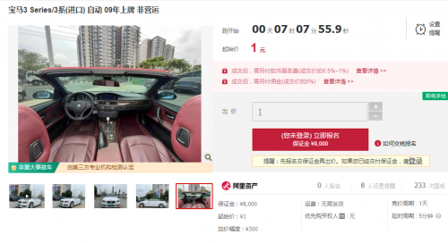 一如在過去的10月27日杭州店直播專場(chǎng),一輛30萬起步的二手寶馬3系,經(jīng)過71輪競(jìng)拍,最終以16.48萬被拍下;奧迪A6L僅以3.08萬成交,玩的就是心跳。進(jìn)入淘寶搜索“阿里資產(chǎn)官方臺(tái)”超多低價(jià)二手好車等你來。