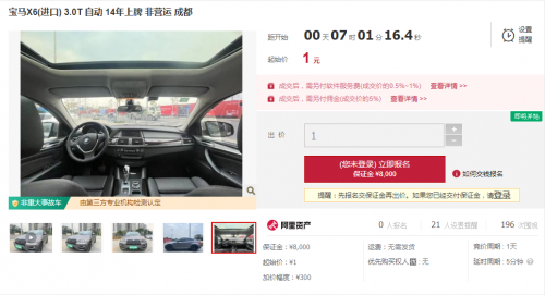2010年上牌、總公里數(shù)11萬的MINI轎車,2013年上牌、總公里數(shù)6萬的Smart轎車,以及2014年上牌、總公里數(shù)6萬的寶馬X6等9輛優(yōu)質(zhì)二手車等待競(jìng)拍外,在起拍價(jià)上更是誠意十足,均以1元起拍,給所有入場(chǎng)參與競(jìng)拍的消費(fèi)者滿滿的驚喜與刺激。