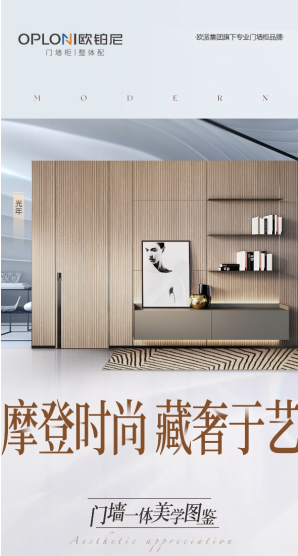 歐鉑尼作為歐派家居集團旗下門墻專業(yè)品類的中高端品牌,通過門墻一體創(chuàng)造新的時代美學,為消費者打造更多樣化的場景美家。
