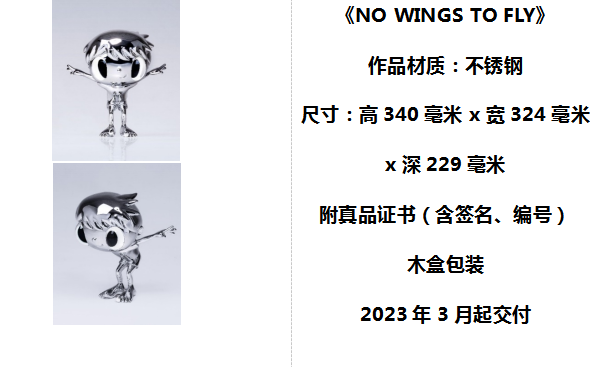 該系列藝術(shù)作品現(xiàn)可詳詢(xún)DDTStore.com。藏家將獲得哈維爾·卡勒的原創(chuàng)作品《NO WINGS TO FLY》。該作品將于2023年向藏家進(jìn)行交付。