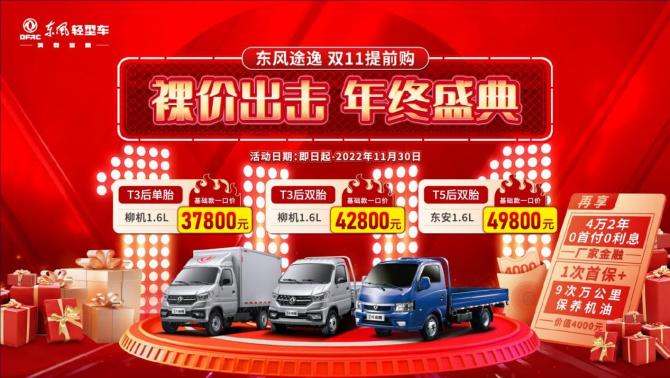 東風(fēng)途逸不僅以硬實(shí)力助力鄉(xiāng)村振興,同時(shí)更以令人心動的價(jià)格回饋廣大消費(fèi)者,期待助力每位消費(fèi)者能夠攜手東風(fēng)途逸,賺得“盆滿缽滿”。值此“雙十一”狂歡購物節(jié)即將到來之際,即日起至2022年11月30日購車用戶可享受超級鉅惠:
