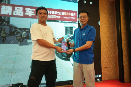 淘車會(huì)員事業(yè)部溫州城市經(jīng)理葉六平(右)為優(yōu)秀車商頒獎(jiǎng)