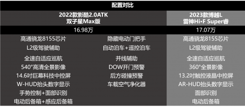 顯見(jiàn),在配置上,影酷搭載的黑科技配置明顯比博越L要多,而從人性化和實(shí)用性上影酷也明顯會(huì)比博越L更有優(yōu)勢(shì)。