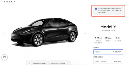 以Model Y后輪驅(qū)動(dòng)版為例,如在今年11月下單、 12月提車(chē),則可能享受4000元的保險(xiǎn)補(bǔ)貼、約11088元的國(guó)家新能源汽車(chē)個(gè)人購(gòu)車(chē)補(bǔ)貼,以及10000元的上海市“油換電”補(bǔ)貼;而相較之下,如果在12月提車(chē),將會(huì)損失4000元的購(gòu)車(chē)補(bǔ)貼;但如在1月提車(chē),將會(huì)損失合計(jì)19088元的補(bǔ)貼差價(jià)及國(guó)家新能源汽車(chē)購(gòu)車(chē)補(bǔ)貼;而如果等到明年1月下單,則將錯(cuò)過(guò)累積高達(dá)29000元的購(gòu)車(chē)補(bǔ)貼。