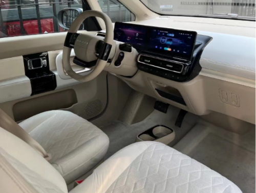 其二,在質感上面。2023款KiWi EV在內飾上面采用了麂皮材質,大面積的麂皮包裹加上軟質材料的運用,看起來頗有品質。還有在中控屏幕上采用了一體瀑布式的雙聯屏,組合起來看起來很有科技感。再看看奇瑞小螞蟻,相比之下品質感并不是非常突出,車內好多地方都采用了硬質塑料,和期望值還是有一定差距的。