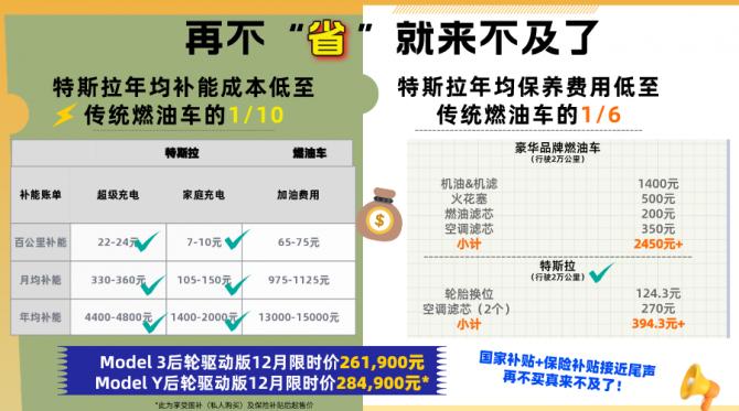 不難發(fā)現(xiàn),上述福利均有明確的時(shí)間期限。用戶抓緊在12月購(gòu)買特斯拉,算上即將取消的“國(guó)補(bǔ)”,此波福利不僅可節(jié)省經(jīng)費(fèi)超1.5萬(wàn)元,還能兌換實(shí)用貼心的超值好禮。