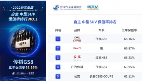 同時,傳祺GS8對高品質的堅守,也讓其長期稱霸保值率排行榜,成為當仁不讓的保值率王者。在近日中國汽車流通協會聯合精真估發(fā)布的《2022年前三季度中國汽車保值率研究報告》中,傳祺GS8以堪比豪華品牌的68.16%超高三年保值率,再次斬獲自主品牌中型SUV三年保值率第一的殊榮。自2020年以來傳祺GS8連續(xù)三年摘得《中國汽車保值率年度風云榜》自主品牌中型SUV保值率桂冠后的再次登頂,今年1-10月,傳祺GS8銷量同比增長超150%,其中雙擎系列占比近50%,穩(wěn)坐國產油電混動車型銷量頭把交椅,這些榮譽的背后,不僅是傳祺GS8綜合實力的體現,更是消費者對傳祺GS8踐行安全出行承諾的肯定。