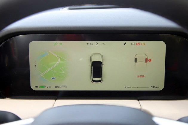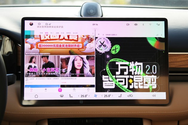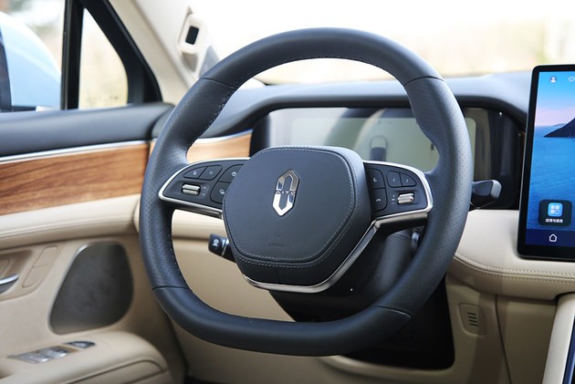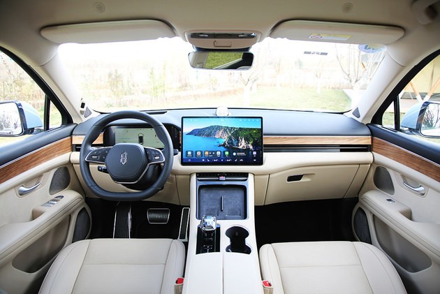 內(nèi)飾部分的變化也同樣很小,基本上沿用了增程版的設(shè)計(jì)。我們拿到的試駕車采用了“韶華杏”主題的配色,配合木紋飾條的點(diǎn)綴,讓車內(nèi)顯得十分淡雅和溫馨,家的感覺很強(qiáng)。